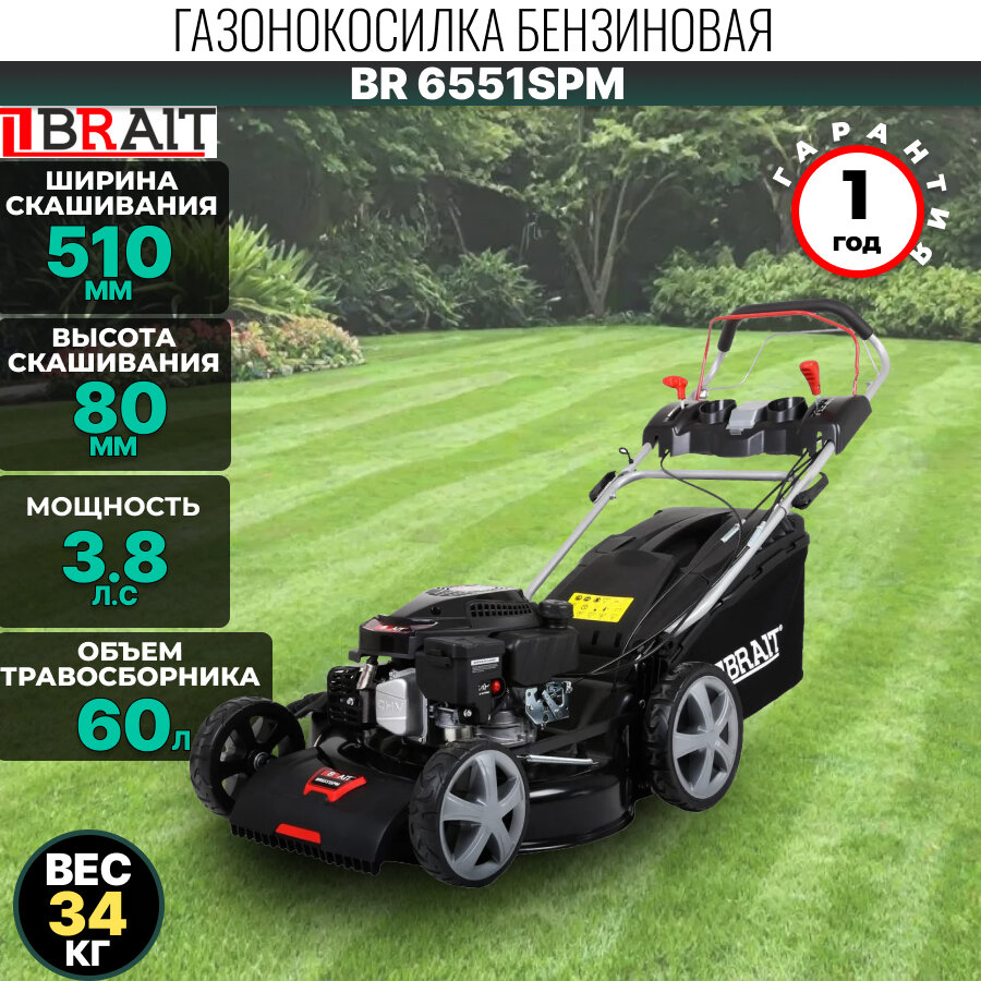 Газонокосилка бензиновая Brait BR 6551SPM интересное:
