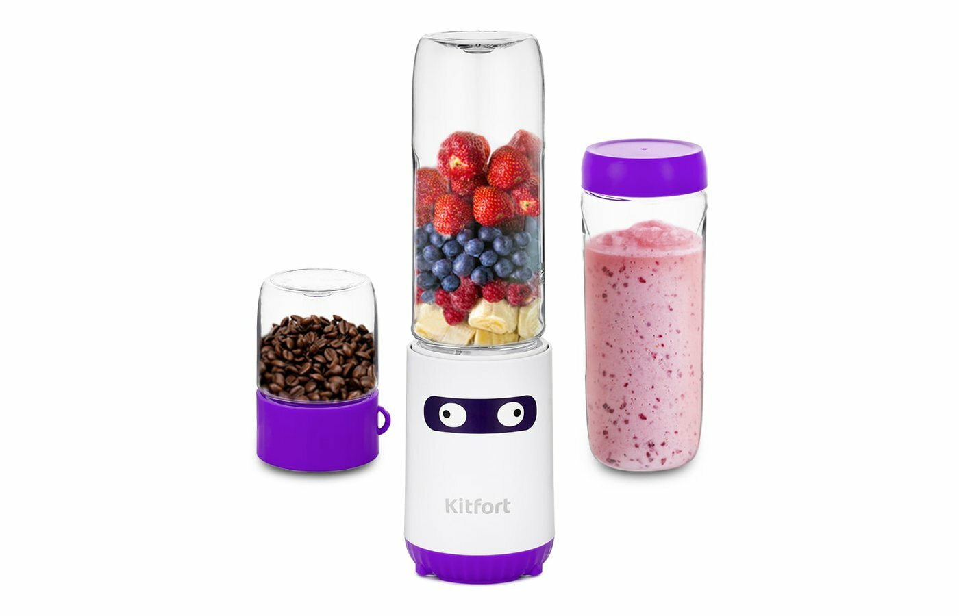 Блендер Kitfort Shake & Take "2 в 1" KT-3033-1 бело-фиолетовый