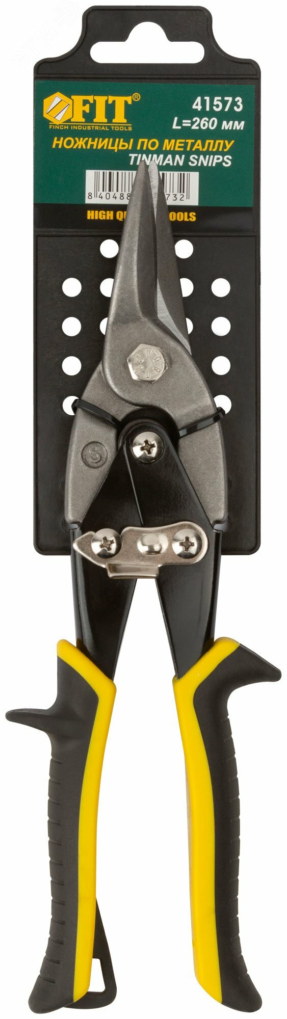 Ножницы по металлу FIT IT 41573, усиленные CrV Профи, прорезиненные ручки, прямые 260 мм