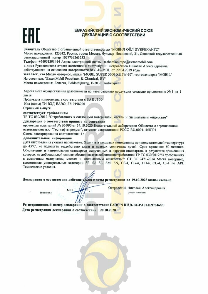 Mobil Масло Мотор. Super 3000 Xe 5w-30 20л