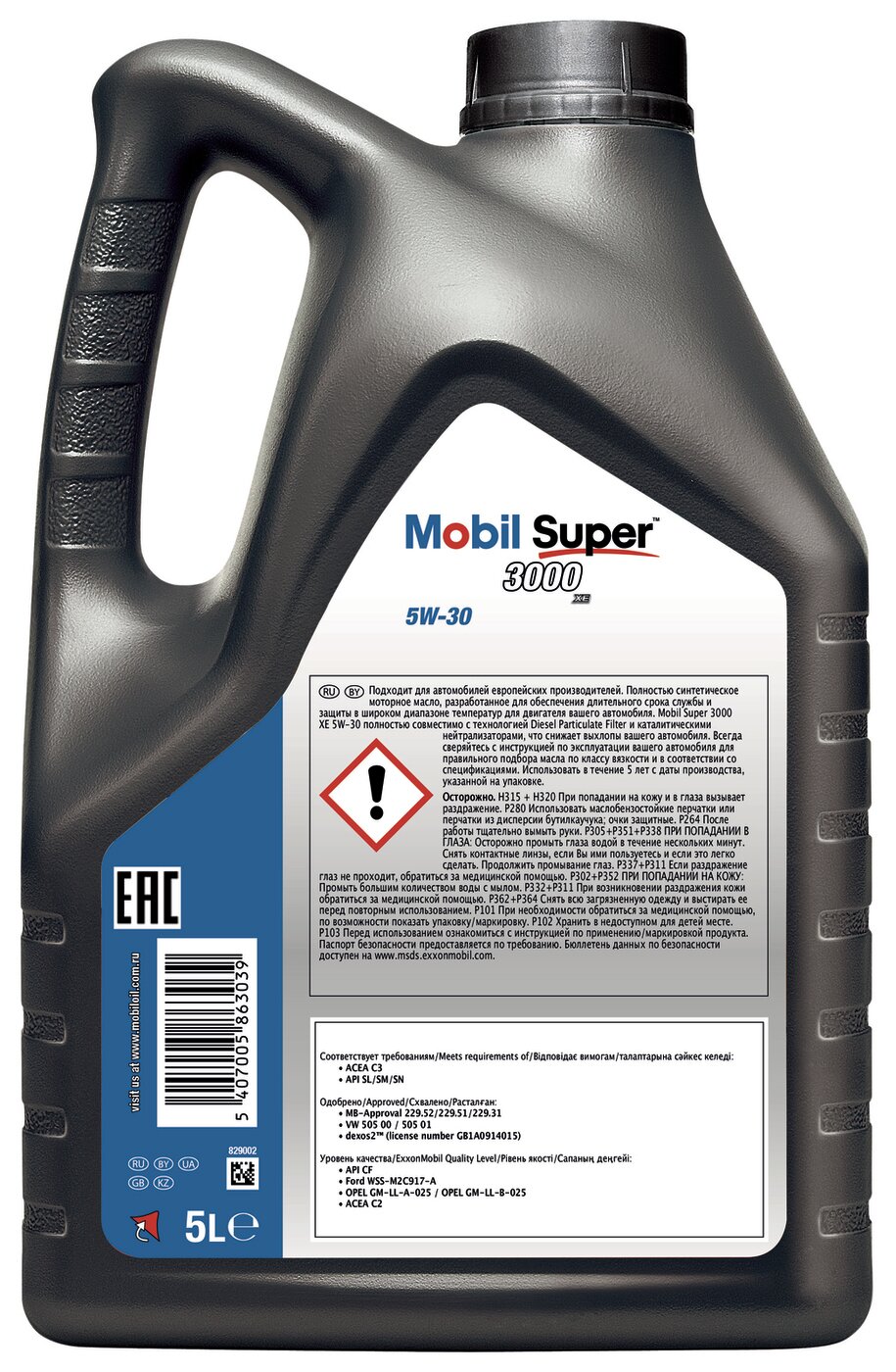 MOBIL 150944 Mobil Super 3000 XE 5W30 (5L)_масло мотор!\API SN,ACEA C3,MB 229.51/229.52,Dexos 2,Ford WSS-M2C917-A