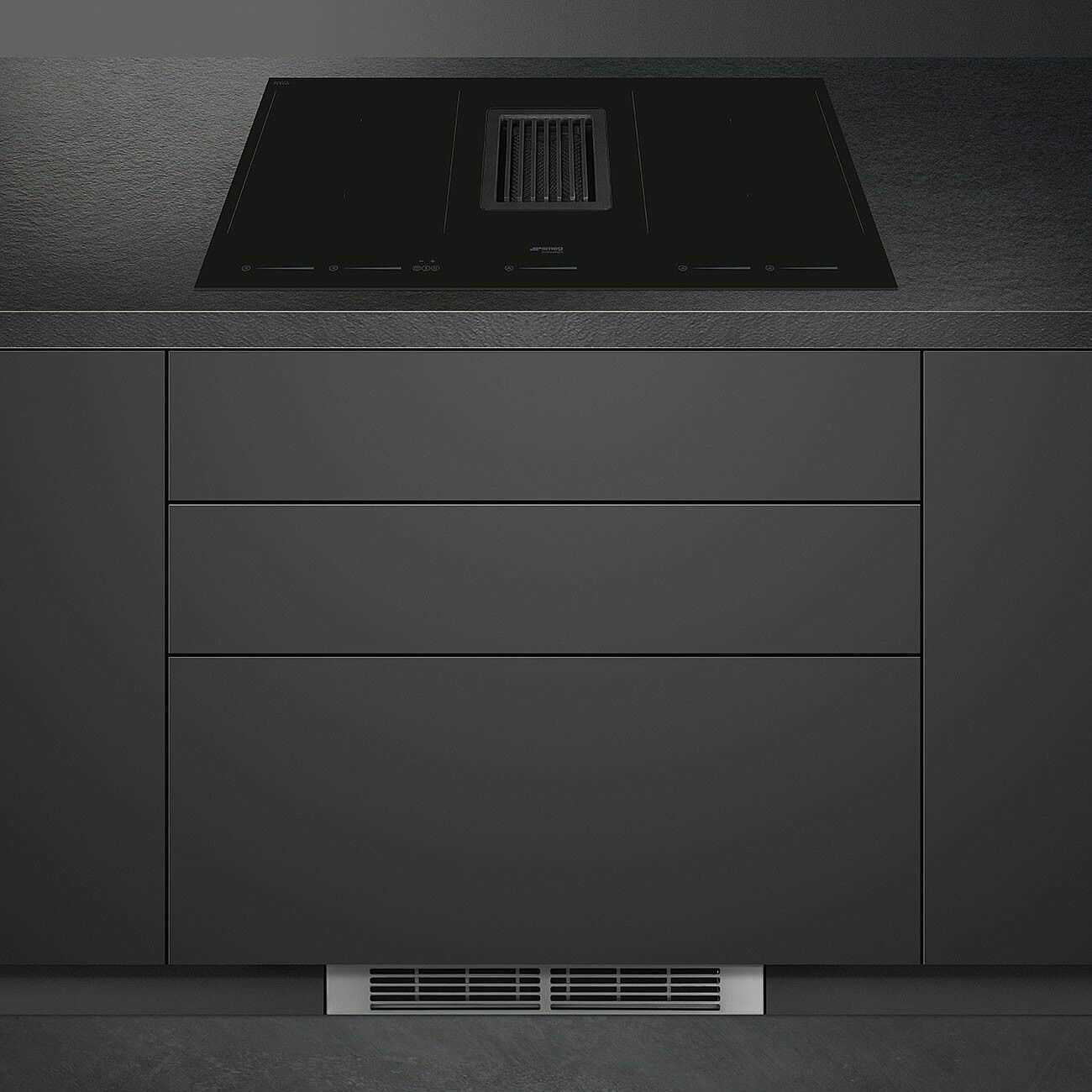 Купить Индукционная варочная панель со встроенной вытяжкой SMEG HOBD682D1, черное стекло, 83 см, Multizone, автовентиляция, 8 уровней мощности, 700 м3/час