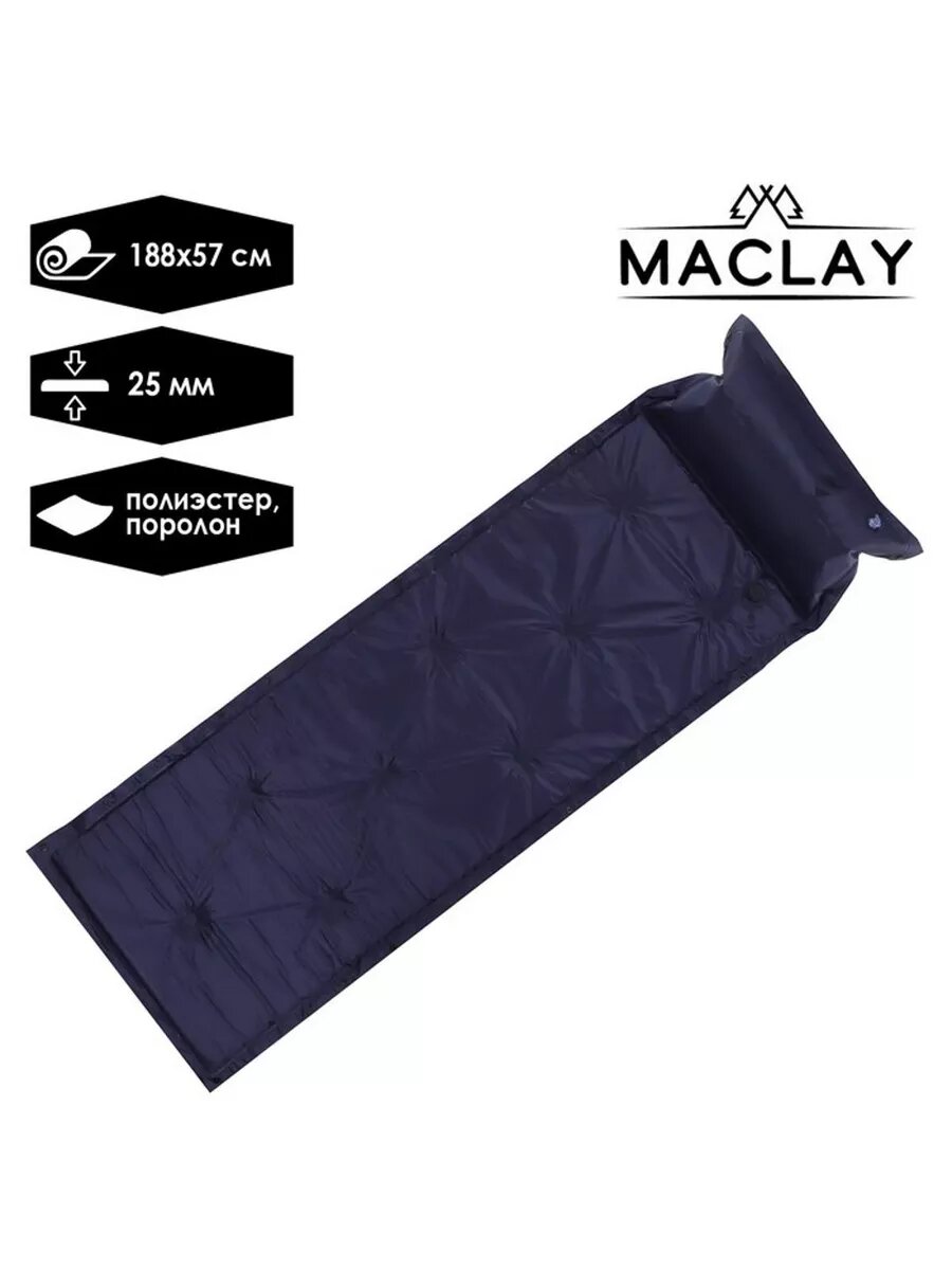 Купить Коврик туристический maclay, самонадувающийся, 188х57х2.5 см, цвет синий