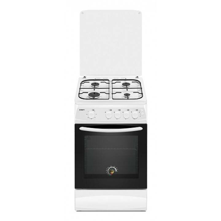 Газовая плита KRAFT KF-FSK5403AGW, газовая духовка, металлическая крышка, эмалированная сталь, бе