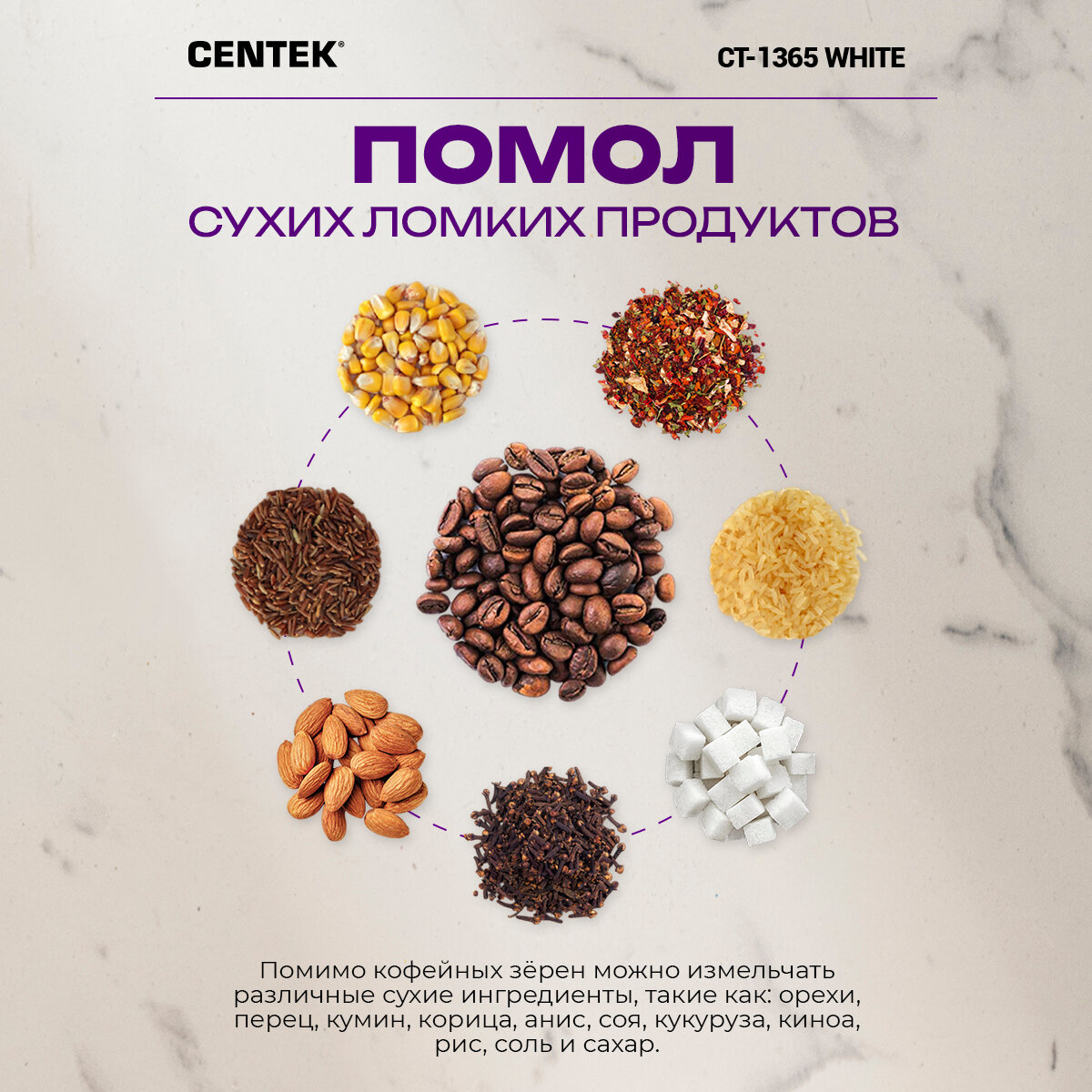 Кофемолка Centek CT-1365 White CT-1365 White .