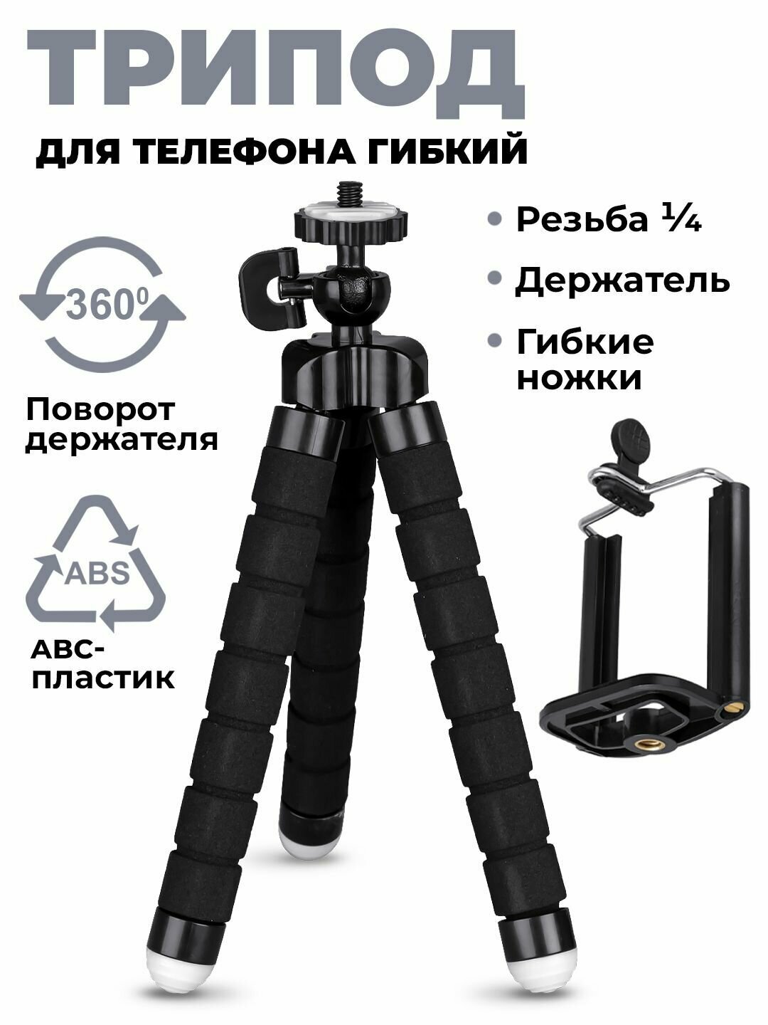 Штатив настольный/Гибкий мини трипод/Универсальный (черный) для: смартфона, видеокамеры, фотокамеры, ТикТока, селфи-колец интересное: