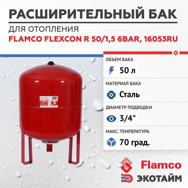 СохранитьБак расширительный Flamco Flexcon R 50 л, 6 бар, для систем отопления (16053RU) интересное: