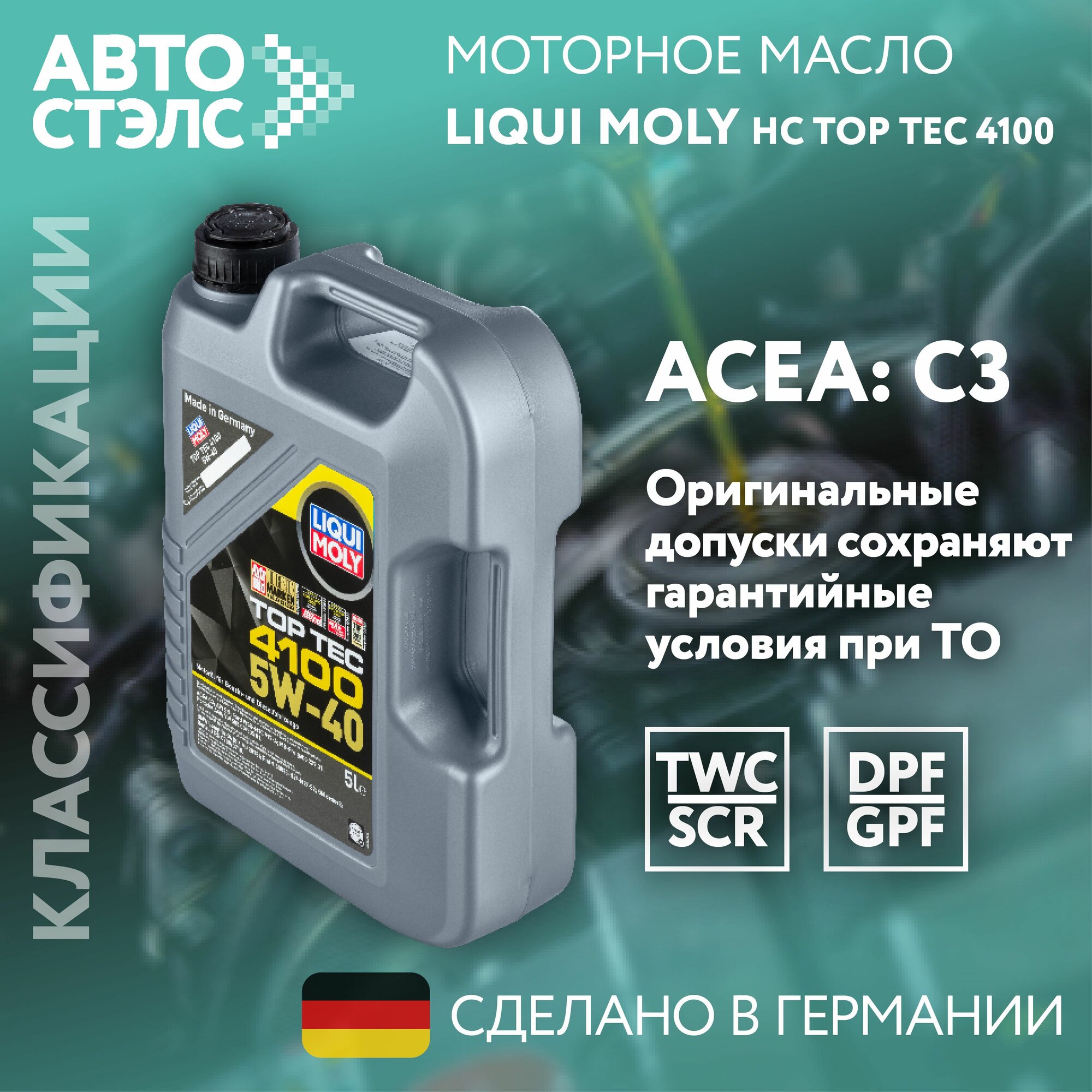 LiquiMoly НС-синт. мот.масло Top Tec 4100 5W-40 CF/SN C3 (4л), шт LiquiMoly