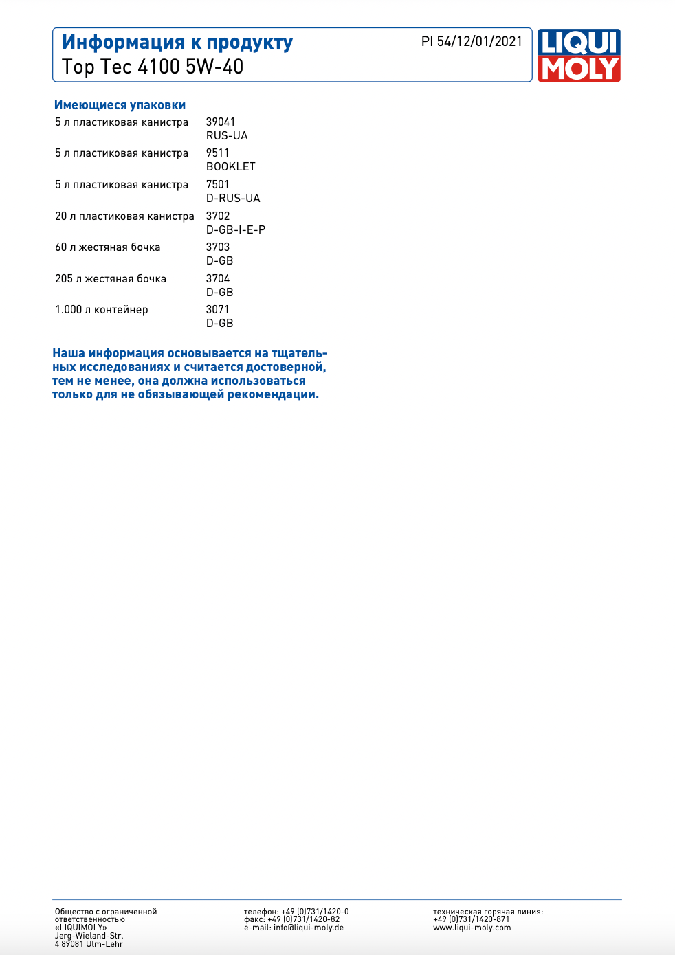 | Производитель | LIQUI MOLY |