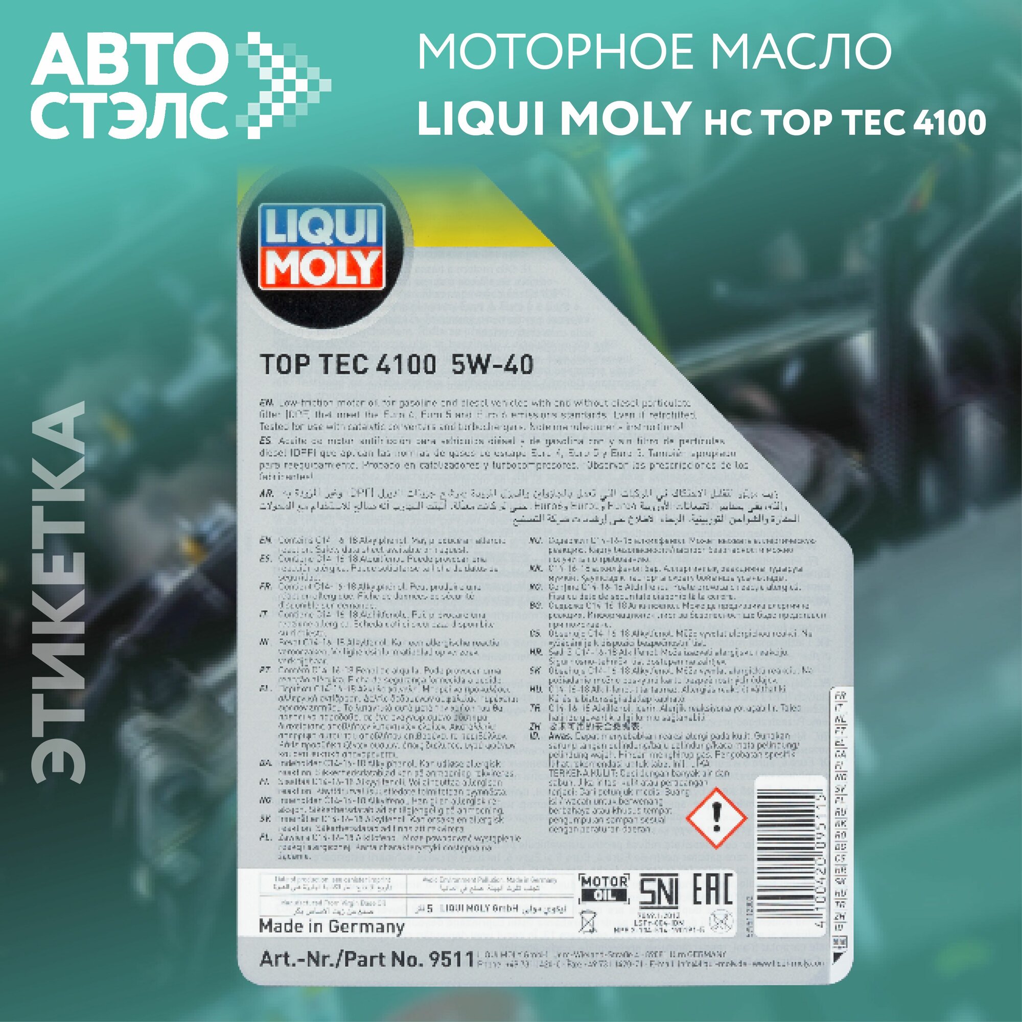 LIQUI MOLY LIQUIMOLY9511 Масло моторное 5W-40 НС-синтет.Top Tec 4100 (5л) (7501)