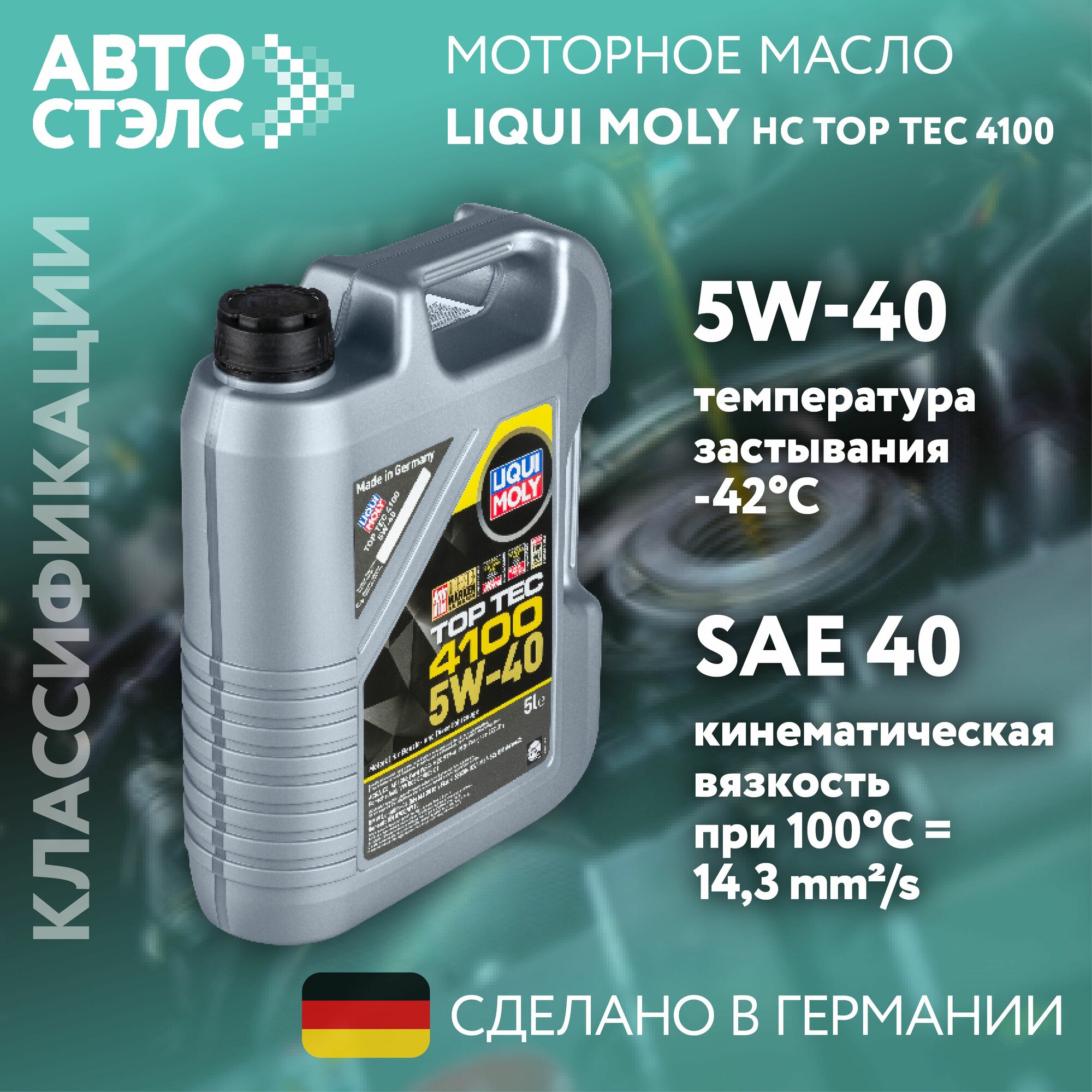 Синтетическое моторное масло LIQUI MOLY Top Tec 4100 5W-40, 4 л, 3.8 кг, 1 шт