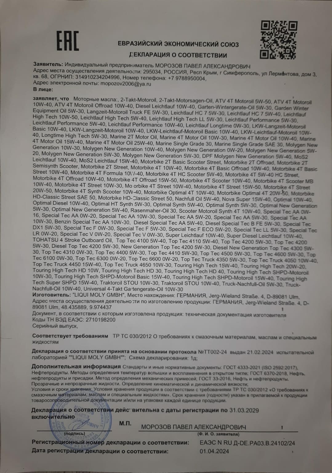 | Отзыв: | Масло не подделка |