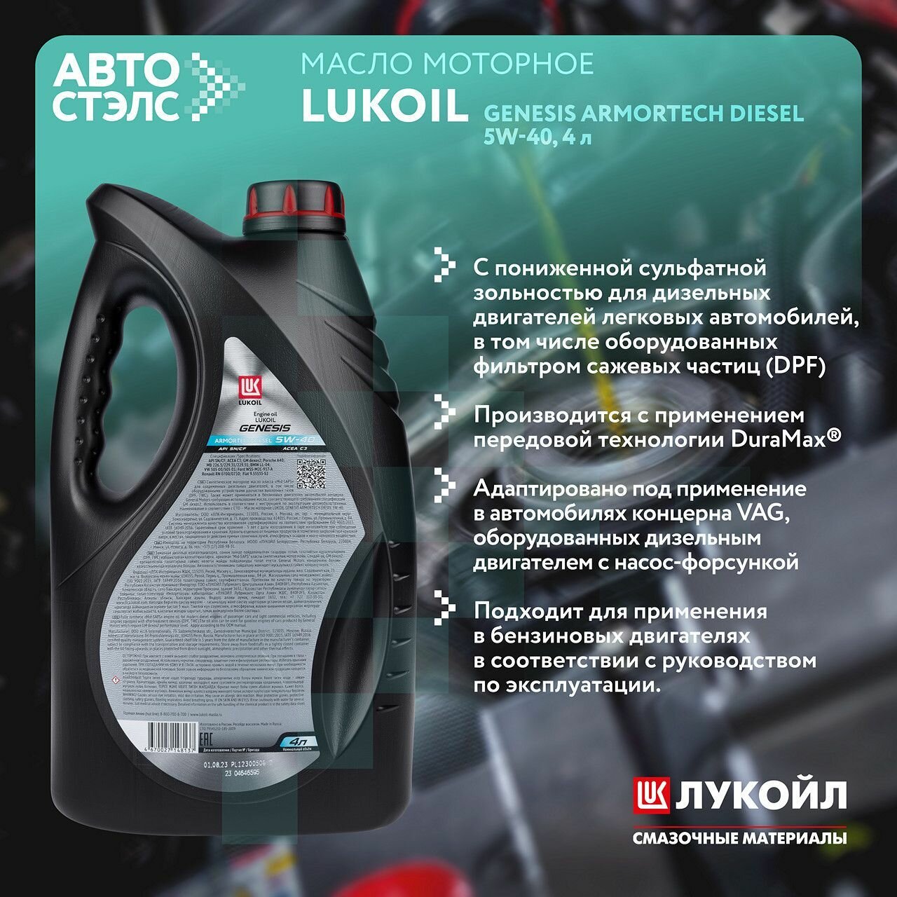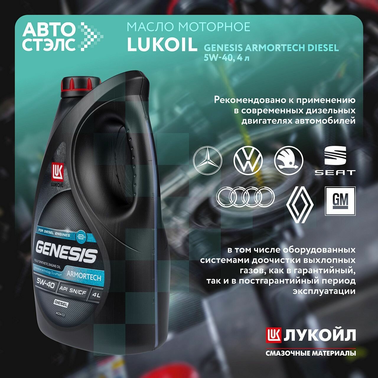 Масло моторное лукойл genesis armortech diesel 5w-40 синтетическое 4 л 3149129