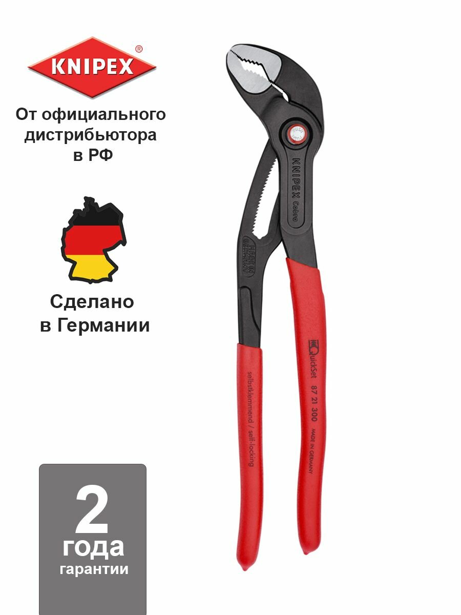 Купить Клещи переставные KNIPEX COBRA QuickSet зев 70 мм, длина 300 мм, фосфатированные, обливные ручки KN-8721300