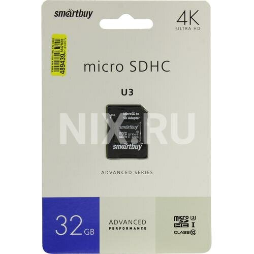 Micro SD Smartbuy 32 Gb Class 10 Advanced U3 UHS-1(с адаптером SD)