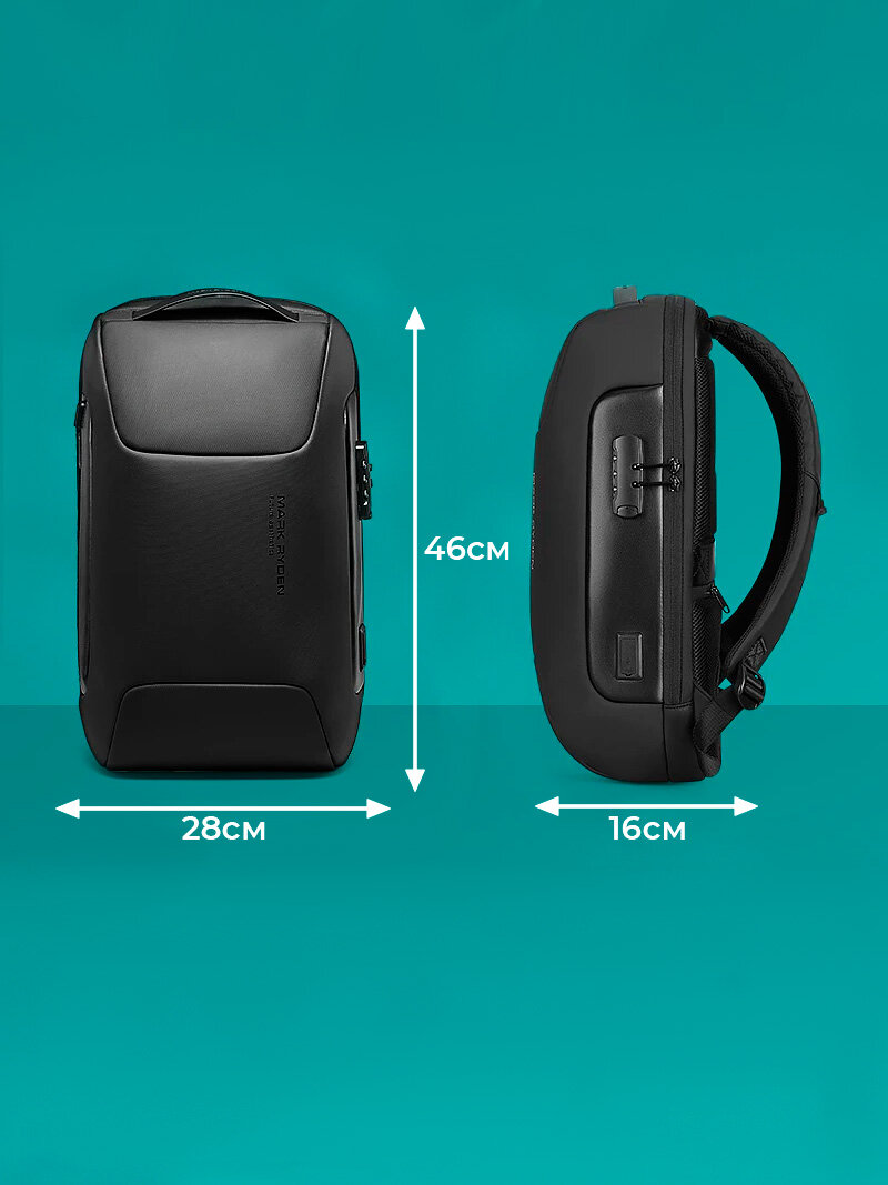 Рюкзак мужской городской вместительный 21л для ноутбука 15.6 с кодовым замком Mark Ryden MR9116 Черный водонепроницаемый с USB зарядкой подростковый