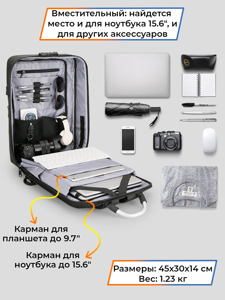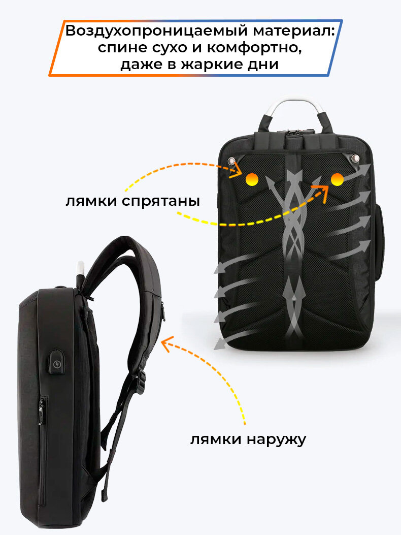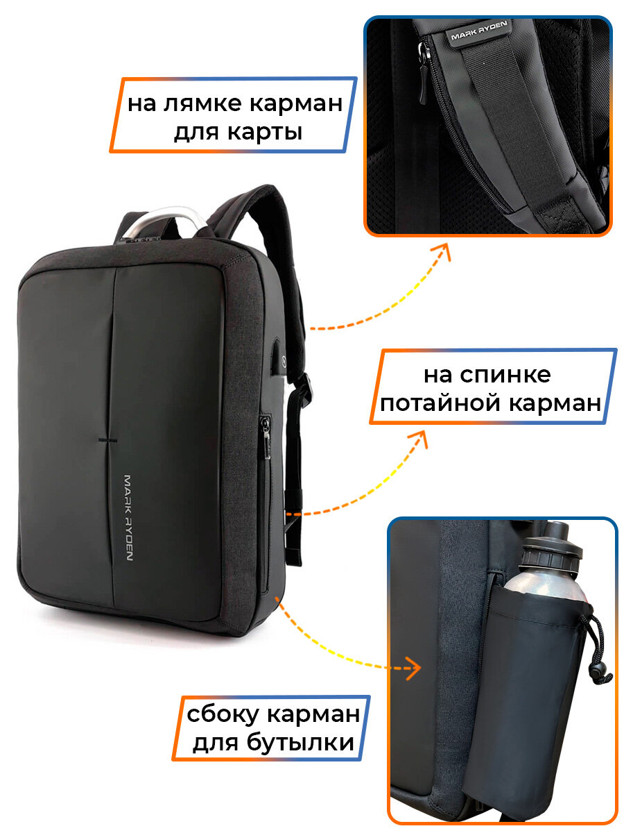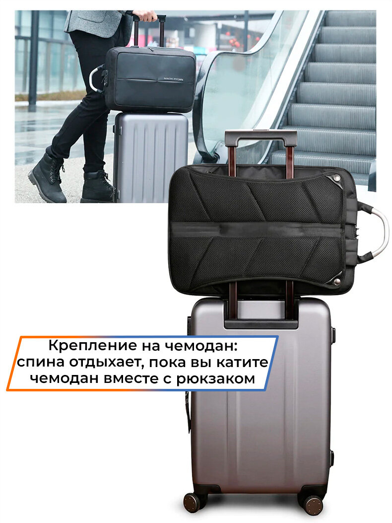 СохранитьРюкзак-сумка трансформер мужской городской дорожный с кодовым замком Mark Ryden 19л для ноутбука 15.6", водонепроницаемый, с USB зарядкой, цвет черный интересное: