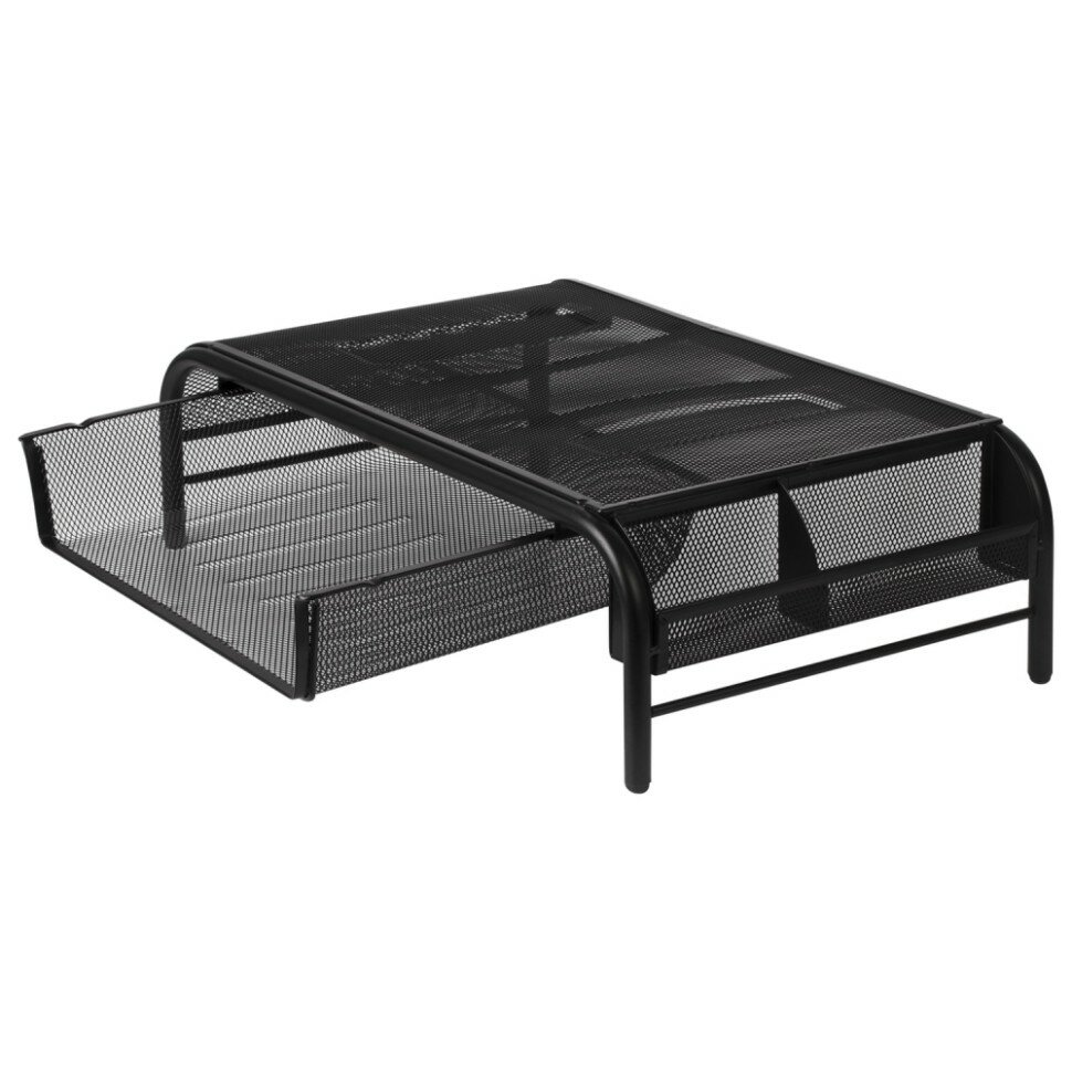 Подставка для принтера, монитора и ноутбука металлическая, 1 полка и 2 отделения, 50,5x30x14,5 см, Brauberg, черная, 512611