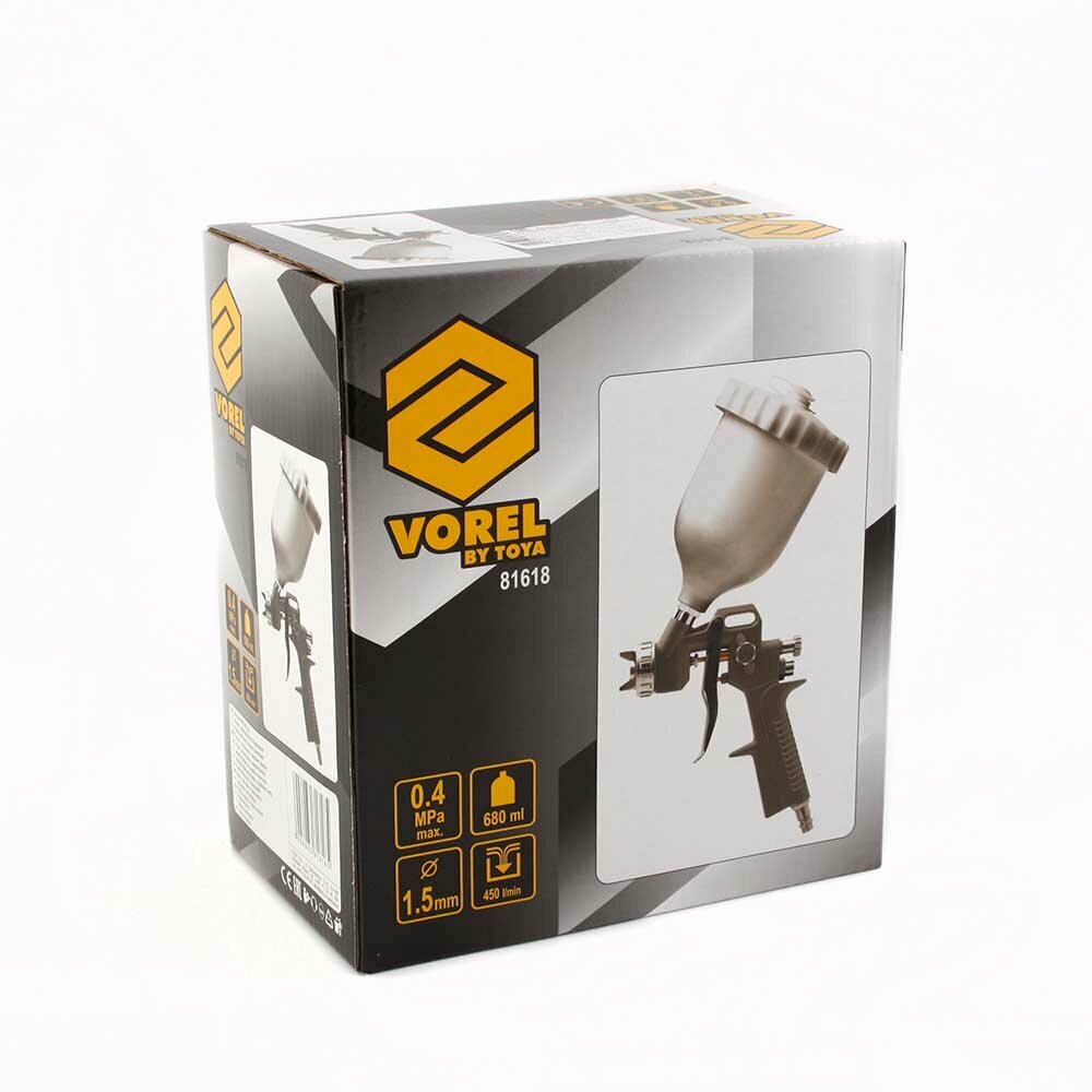 Купить VOREL 81618 Краскопульт пневм с верх бачком V=0,68л (сопла d1,5мм)