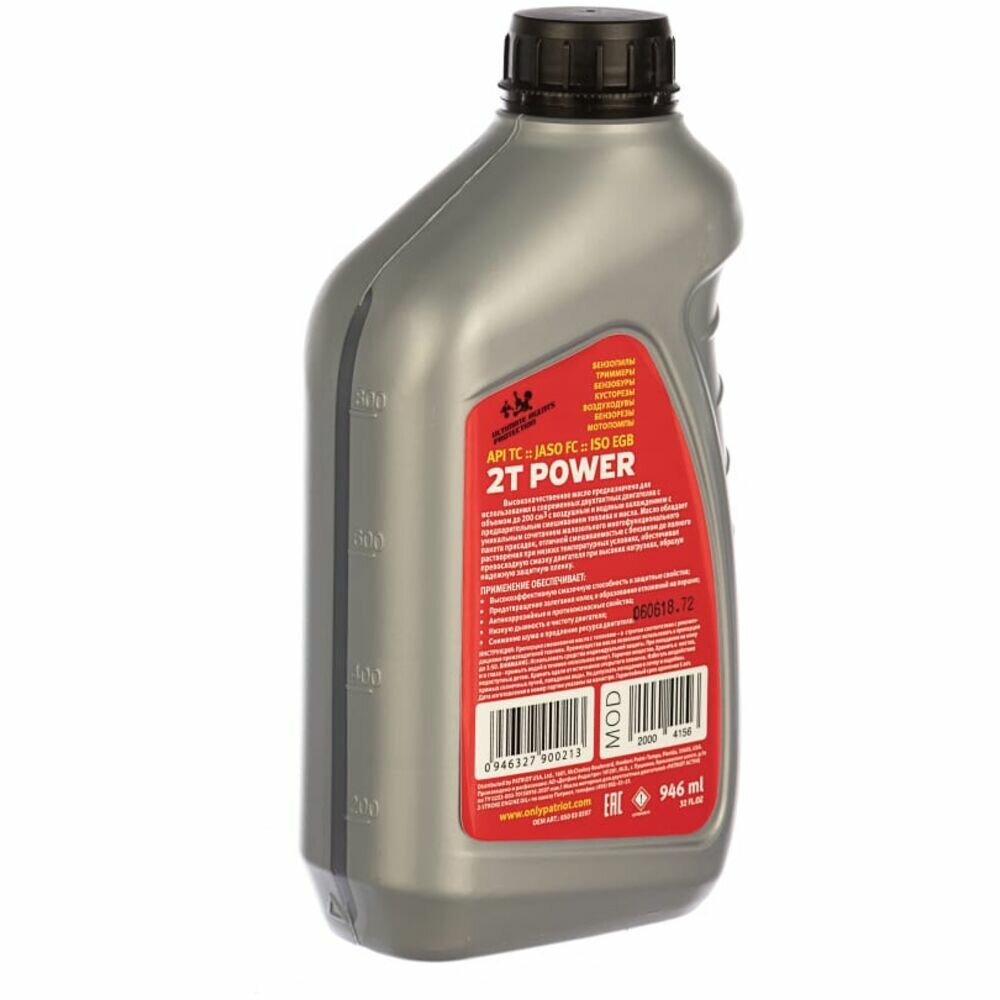 Масло для 2-тактных двигателей PATRIOT Power Active 2T 0,946 л, бут.