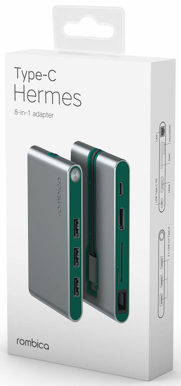 Концентратор Rombica Hermes Green TC-00255 3*USB 3.0, USB Type-C, SD, microSD, HDMI, RJ-45