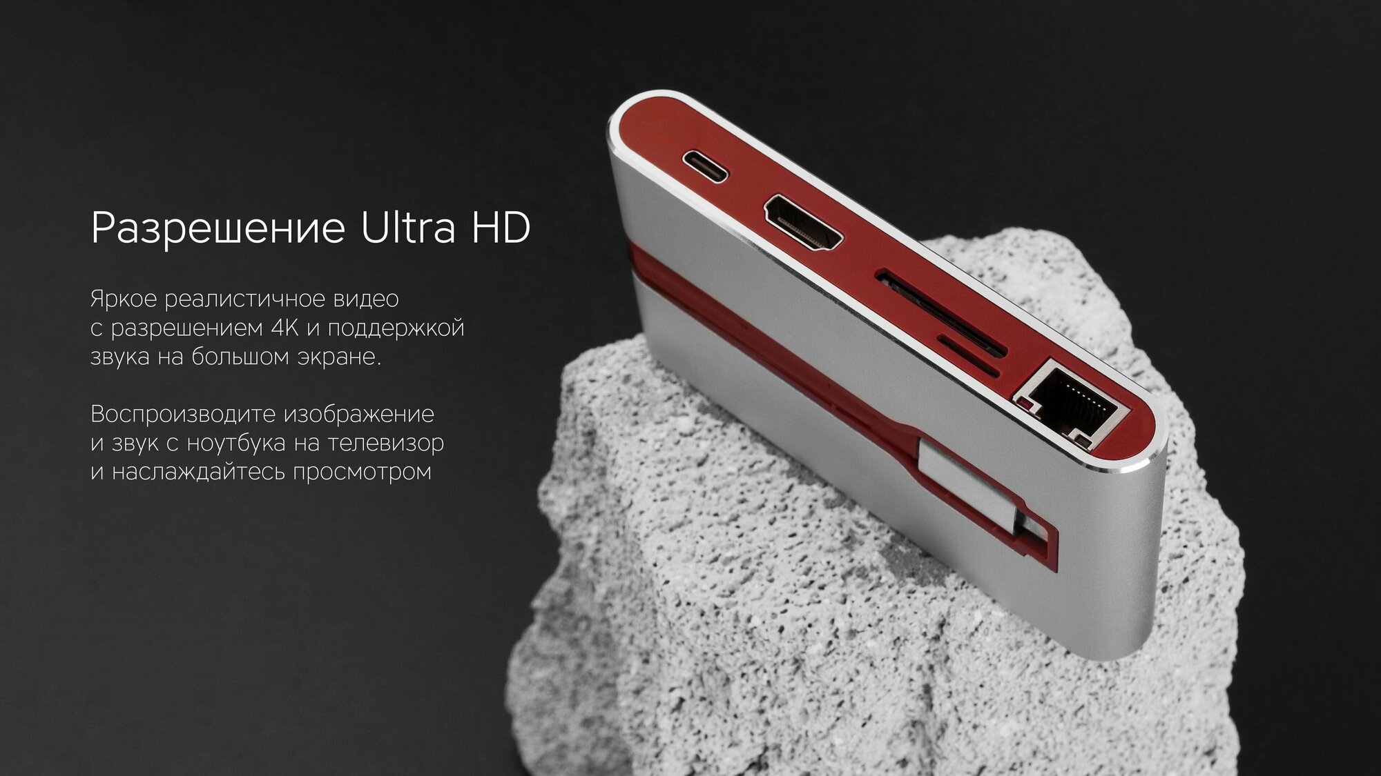 Концентратор Rombica Hermes Red TC-00253 3*USB 3.0, USB Type-C, SD, microSD, HDMI, RJ-45