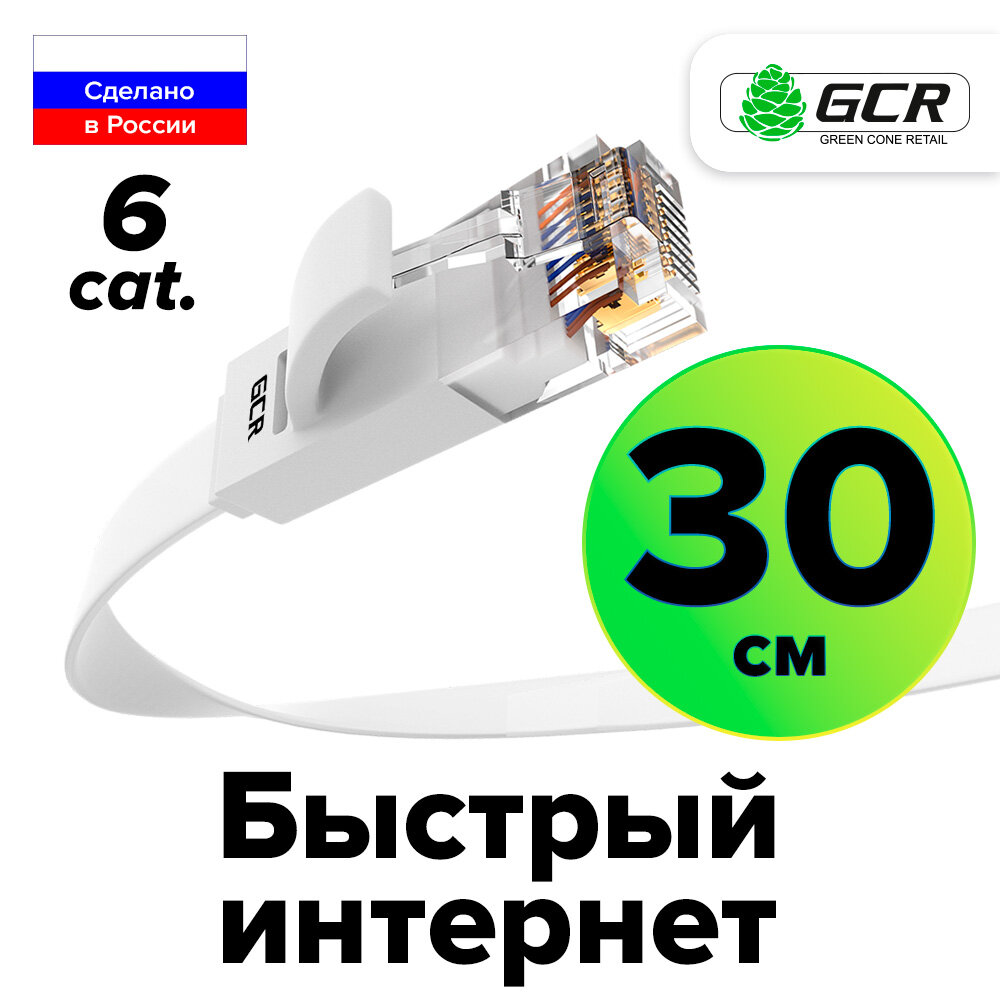 Купить Провод PROF плоский UTP cat.6 10 Гбит/с RJ45 LAN кабель для интернета медный контакты 24K GOLD (GCR-LNC62) белый 0.3м