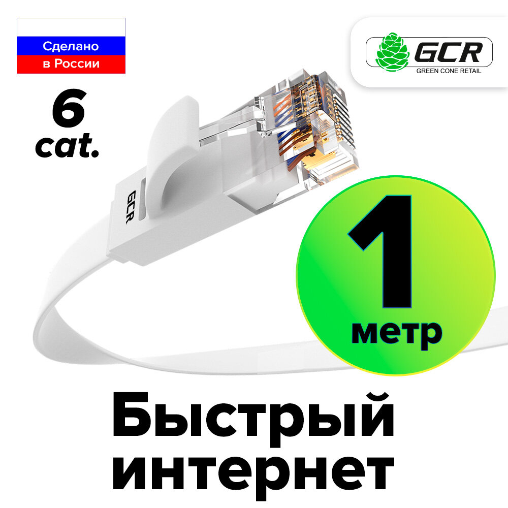 Купить Патч-корд GCR PROF плоский UTP cat.6 10 Гбит/с RJ45 LAN контакты 24K GOLD (GCR-LNC62) белый 1.0м
