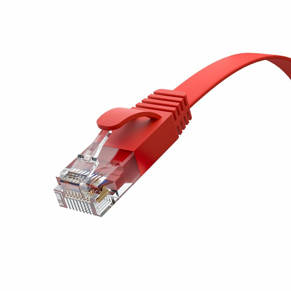 Патч-корд GCR PROF плоский UTP cat.6 10 Гбит/с RJ45 LAN кабель для интернета контакты 24K GOLD (GCR-LNC62) красный 1.0м