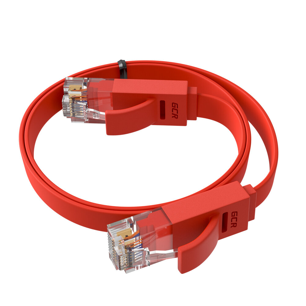 Патч-корд GCR PROF плоский UTP cat.6 10 Гбит/с RJ45 LAN кабель для интернета контакты 24K GOLD (GCR-LNC62) красный 1.0м