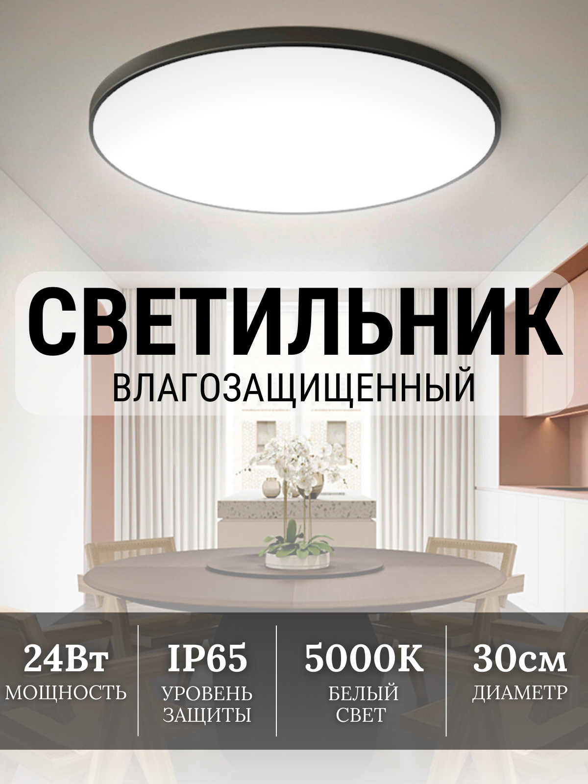 Влагозащитный светильник светодиодный накладной LE LED BL IP65 18Вт 5000K, потолочный светильник для ванной комнаты