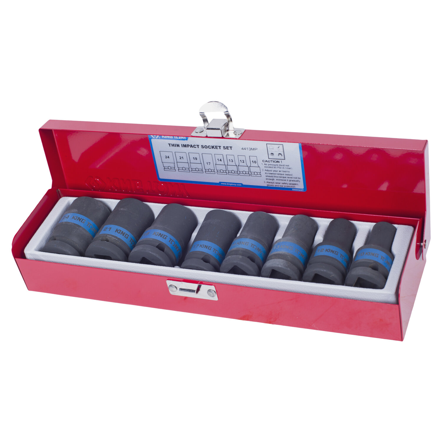 Купить KING TONY Набор ударных торцевых головок 1/2", шестигранные, тонкостенные, 10-24 мм, 8 предметов 4413MP