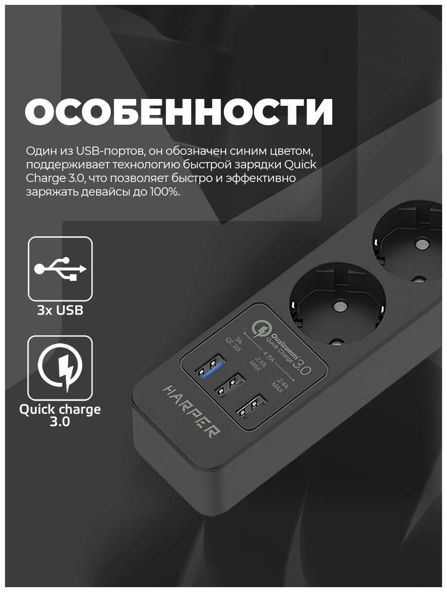 СохранитьСетевой фильтр-удлинитель Harper UCH-340 Black QC3.0 интересное: