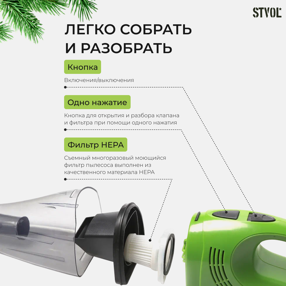 Пылесос STVOL 120Вт 0,5л