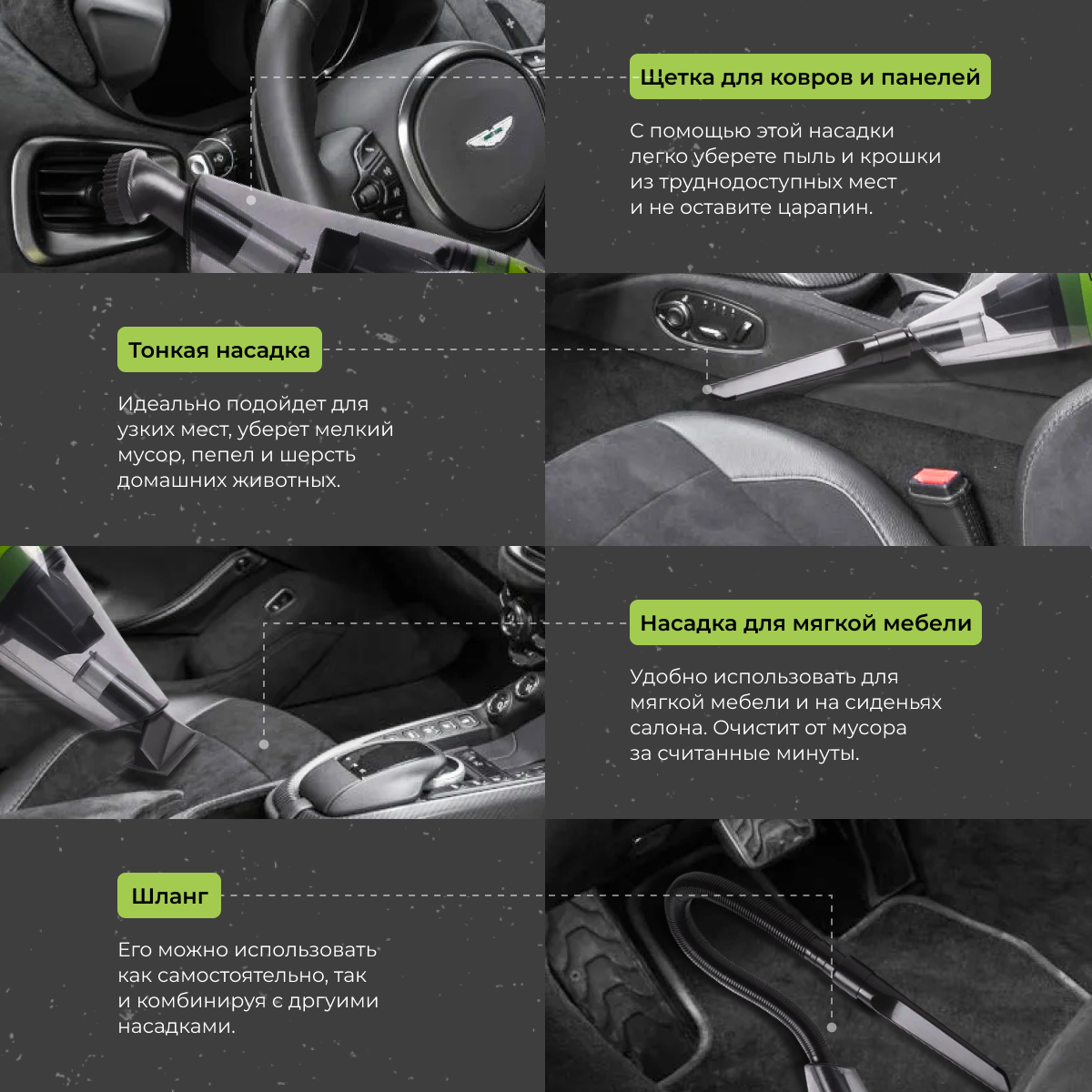 | Отзыв: | Не ожидая много от мини-пылесоса, была приятно удивлена. Для портативного устройства довольно неплохо сосёт. Крошки пыль и мусор с сидений убирает хорошо, под ковриками при желании тоже можно много выпылесосить. |