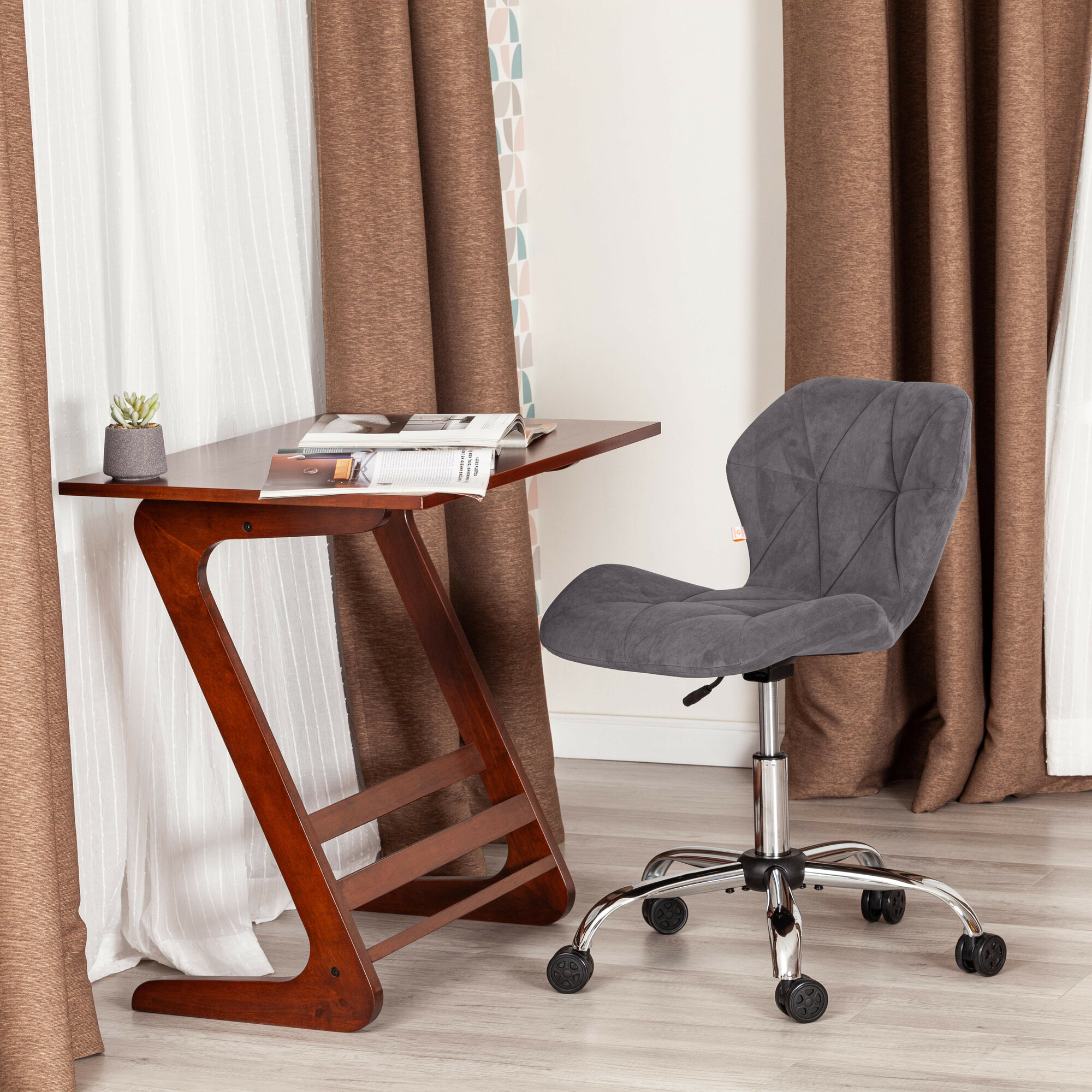 Стул компьютерный Selfi, Цвет обивки: коричневый, Цвет корпуса: хром