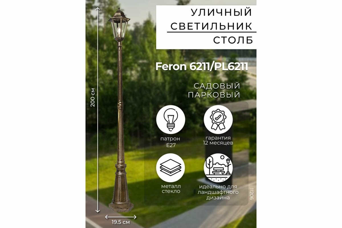 Светильник садово-парковый FERON 6211/PL6211 11206