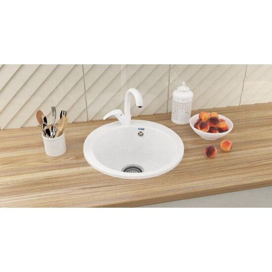 Комплект Мойка кухонная Ulgran U-104-331 белая + Смеситель для кухни Ulgran U-007-331 белый