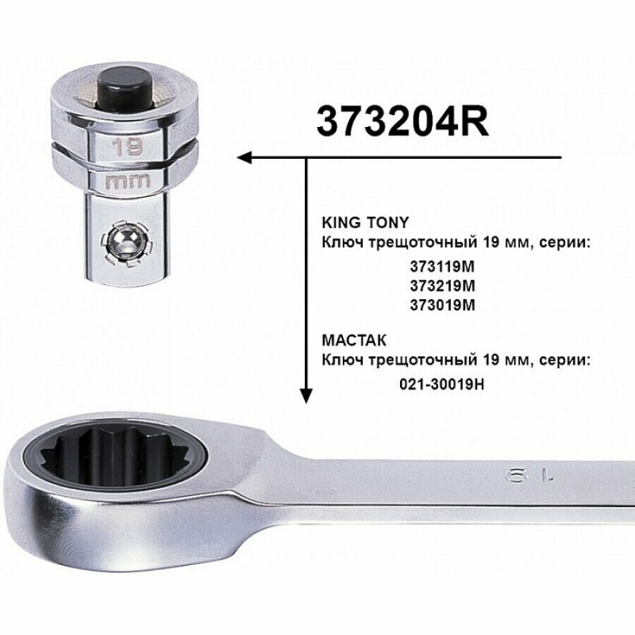 Купить KING TONY Переходник для трещоточных ключей 19 мм для головок 1/2" 373204R