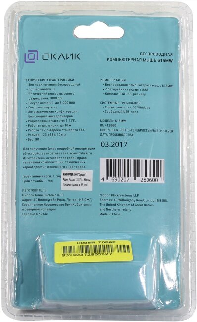 Ниже Вы можете прочитать отзывы на Oklick 615MW черный/серебристый оптическая (1000dpi) беспроводная USB (2but) [412860], ознакомится с подробными характеристиками, посмотреть интересные обзоры и фотографии на Oklick 615MW черный/серебристый оптическая (1000dpi) беспроводная USB (2but) [412860].