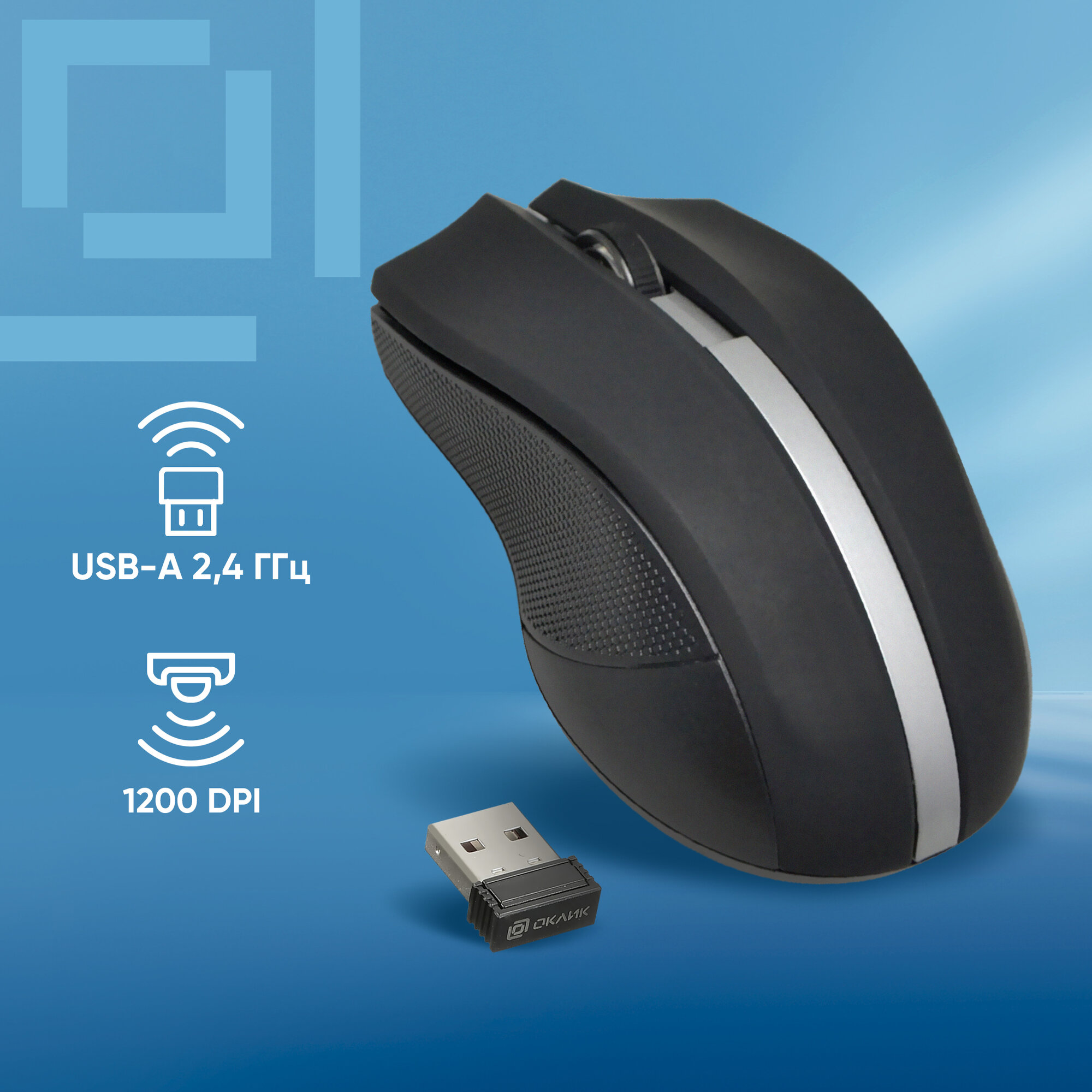 Oklick Wireless Optical Mouse (615mw) (Black&Silver) 1000dpi (rtl) USB 3btn+Roll (412860) .