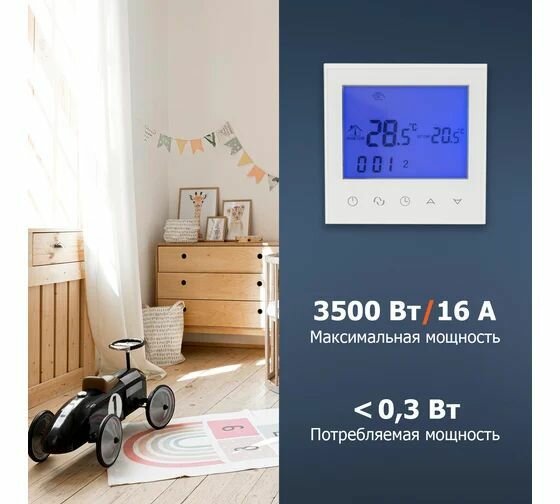 Терморегулятор Rexant R100W, с автоматическим программированием и сенсорными кнопками, белый