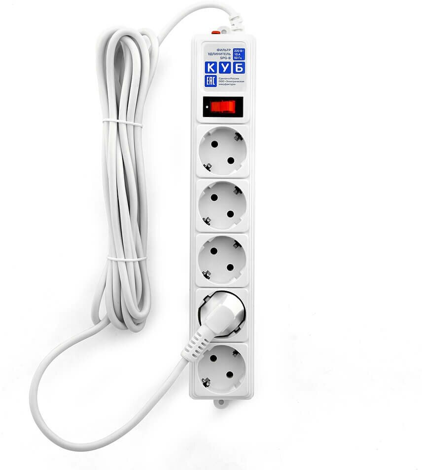 Сетевой фильтр Power Cube, 5 розеток, 5 м, 10 А, 2200 Вт, белый 1531562