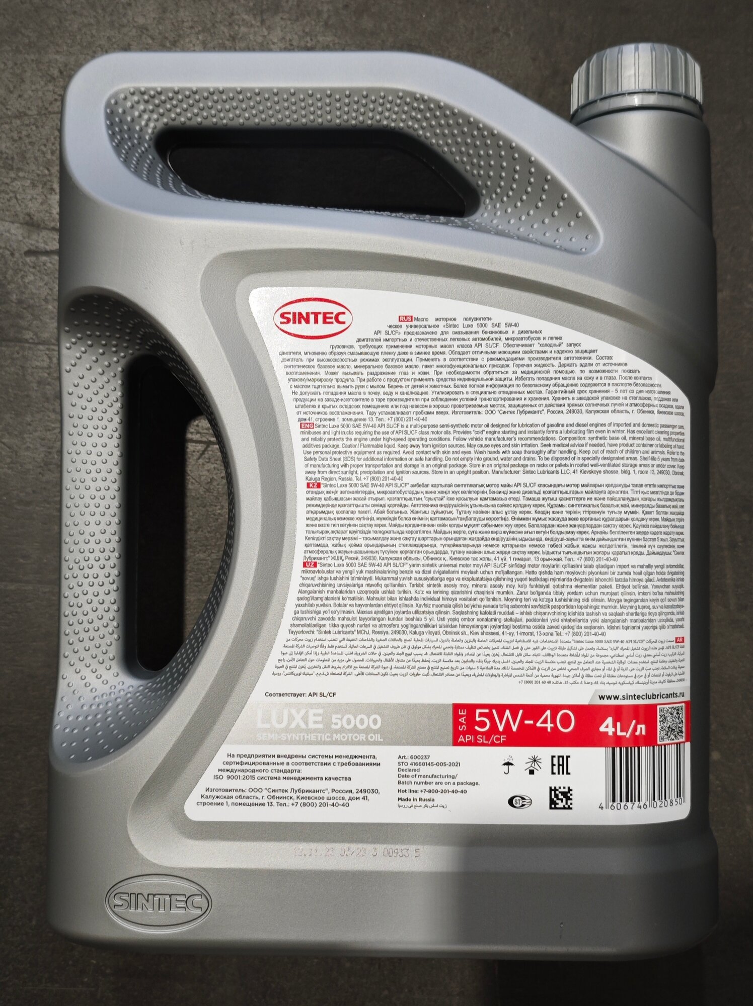 Купить SINTEC 600237 Масло SINTEC 5W40 Luxe 5000 API SL/CF 4л п/с 801933/600237