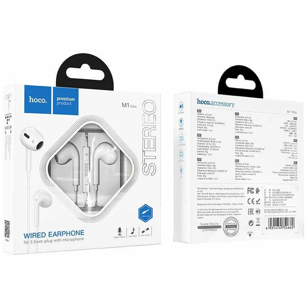 Наушники внутриканальные HOCO M1, Max, Jack 3.5мм, 1.2 м, цвет: белый