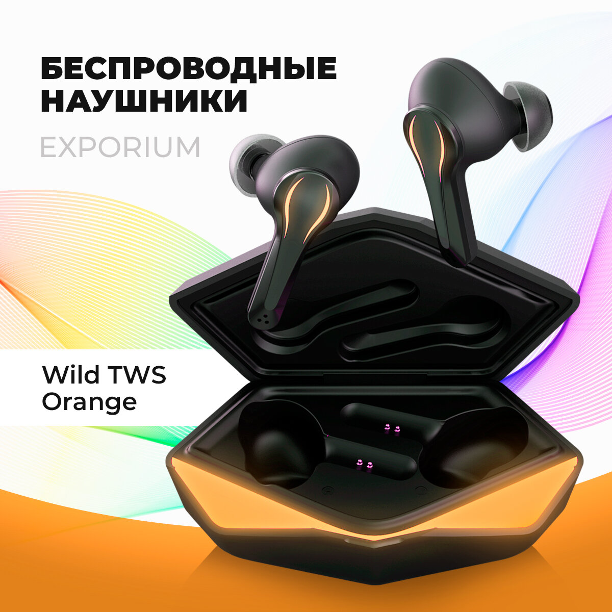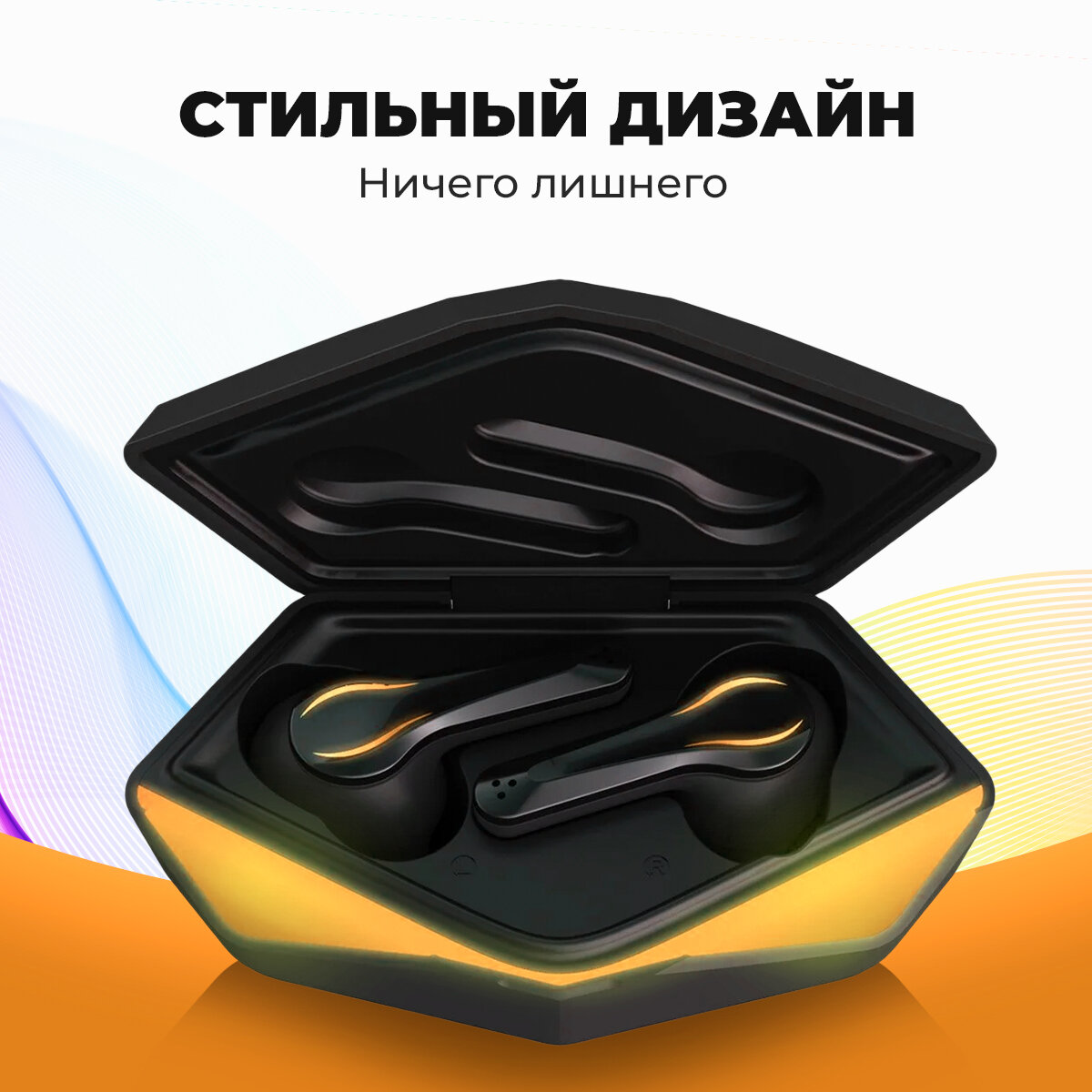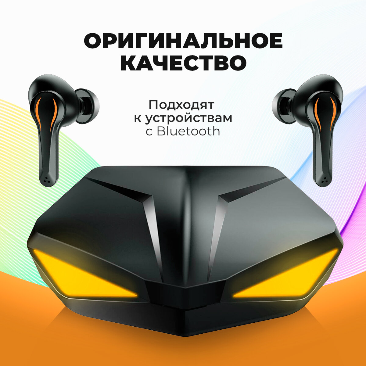 Наушники Wild TWS, игровые, вакуумные, 50/400мАч, отклик 60мс,подсветка,оранжевые