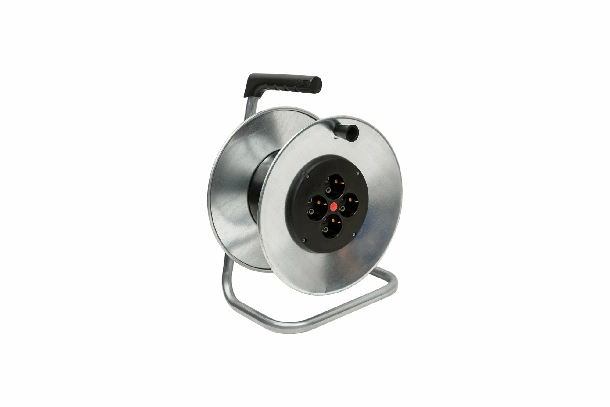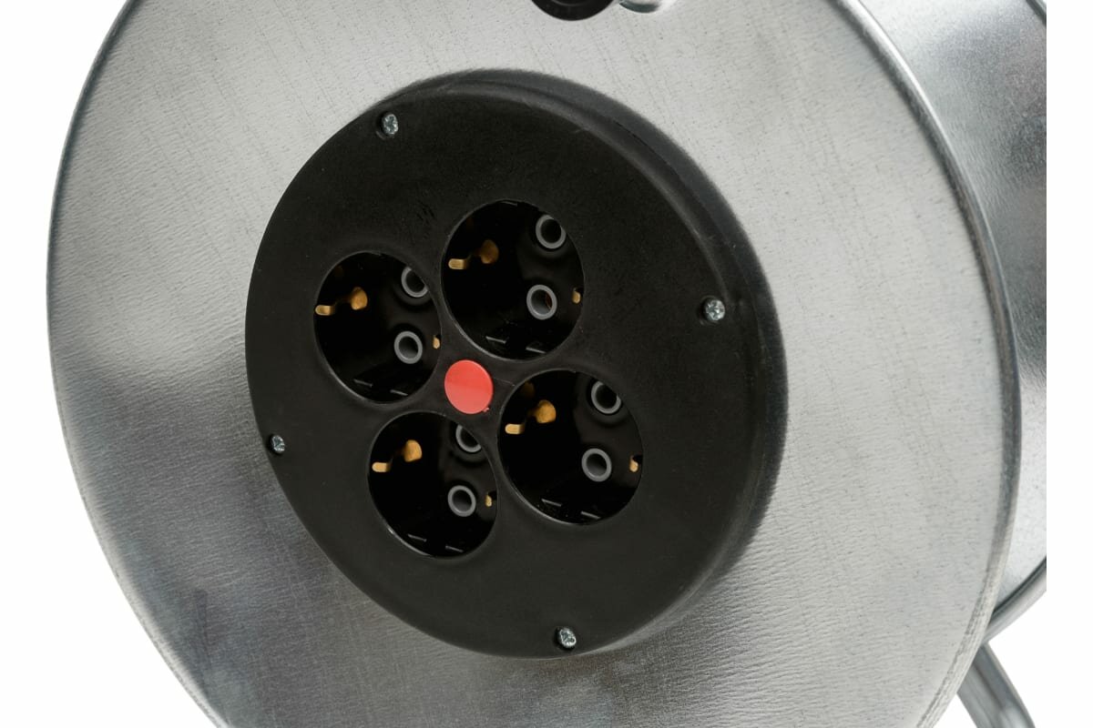 10004 Катушка LUX K4-Е с металлическим ободом, 4 встр. розетки с з/к (без провода)