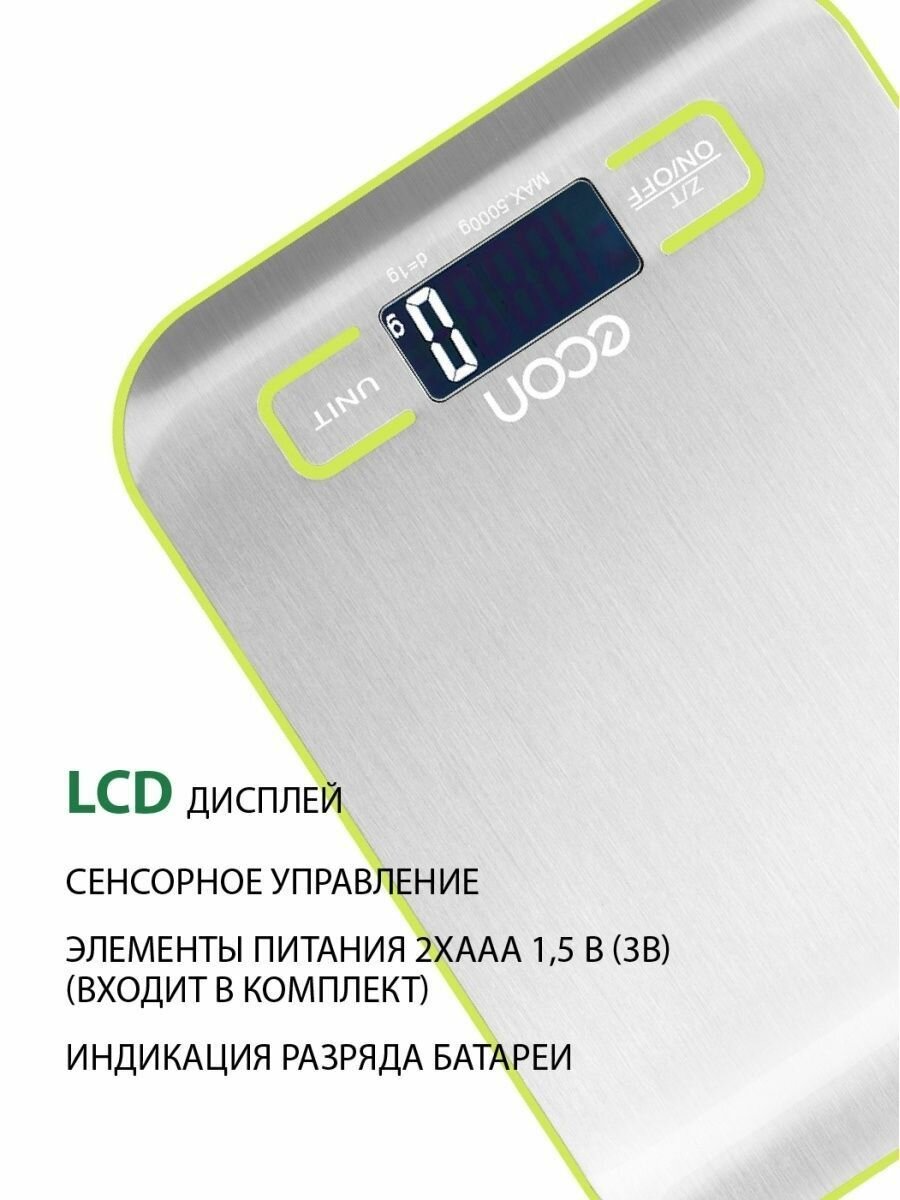 Весы кухонные ECON ECO-BS201K до 5 кг, серебристый