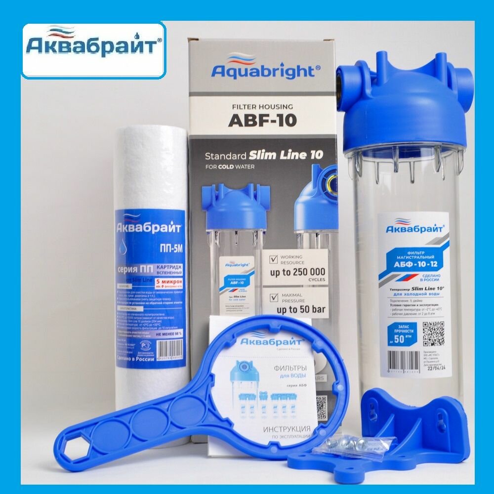 Магистральный фильтр для воды АБФ-10 1/2" картриджем ПП-5М 5 мкм, Колба для фильтра 10SL, нитяной картридж интересное: