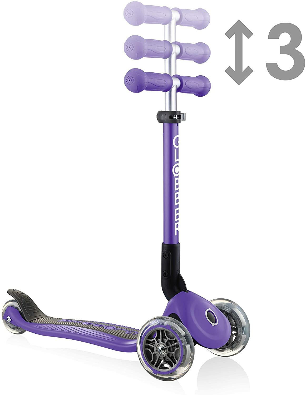Детский 3-колесный самокат GLOBBER Junior Foldable Lights, фиолетовый